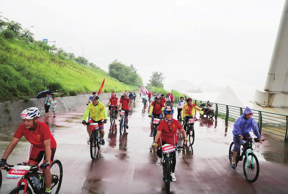 在短暫的熱身運動后,騎行活動正式開始。韓宗桂等領(lǐng)導(dǎo)帶隊率先出發(fā),各支騎行隊伍緊隨其后,一條紅色的火焰瞬間在柳江河畔蔓延開來。騎手們克服雨天路面濕滑的困難和考驗,用手去擦拭流入眼睛的雨水,避免影響視線。大家在騎行過程中相互鼓舞、相互扶持,不拋棄、不放棄,將柳鋼人團結(jié)互助、不畏艱險的精神發(fā)揚光大,參與的職工全部都順利完成了此次騎行。